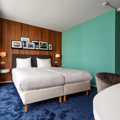 Interieurarchitect Gerben van der Molen werkte het thema oceaanzeilen uit in frisse nieuwe ontwerpen; Bulsink was als general contractor van A tot Z verantwoordelijk voor de uitvoering. “Gerben is de huisarchitect van onze club”, verklaart Dirk. “En Bulsink heeft al veel van dit soort opdrachten gedaan voor andere hotelgroepen, dus via-via kwamen we al snel bij hen terecht.”