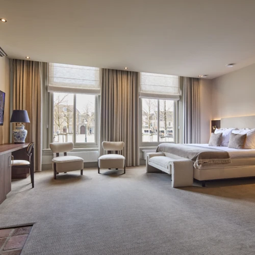 In het hart van ’s-Hertogenbosch, aan de Parade en naast de iconische Sint-Janskathedraal, staat het luxe boutique hotel The Saints. De gerenoveerde panden, met een geschiedenis van 130 jaar, zijn zorgvuldig getransformeerd met behoud van hun monumentale status. Deze hotelrenovatie heeft geleid tot een harmonieus samenspel van historisch erfgoed en hedendaagse luxe — en resulteert in een werkelijk unieke gastervaring.