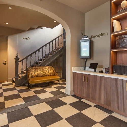 Een opvallend element is de 24/7 receptie met hologramhost. Gasten communiceren in realtime met een remote receptionist via een holografisch display. Deze technologie zorgt voor efficiënte, maar persoonlijke service — en geeft de hotelervaring een eigentijdse, innovatieve uitstraling.