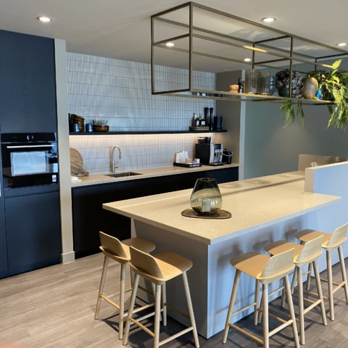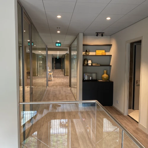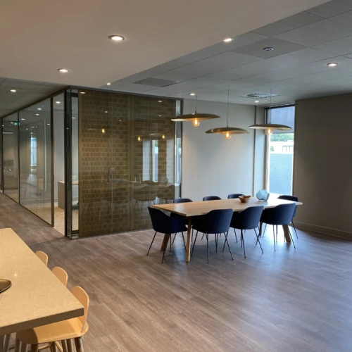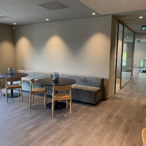 Bij de keuze van materialen hebben we nadruk gelegd op duurzaamheid en kwaliteit. De nieuwe vloeren, wandbekleding en meubelen zijn niet alleen stijlvol, maar ook duurzaam, akoestisch en onderhoudsvriendelijk. We hebben ook geavanceerde technologieën geïntegreerd, zoals slimme verlichting en klimaatbeheersingssystemen, die bijdragen aan een comfortabele en energiezuinige werkomgeving.