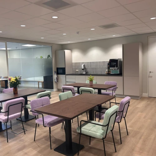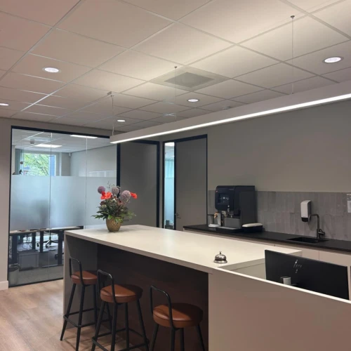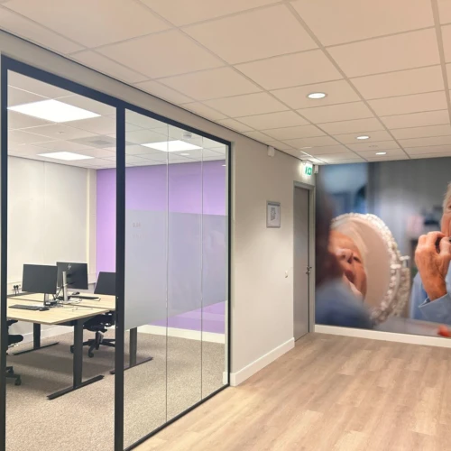 Daarnaast beschikt het nieuwe kantoor over meer vergaderruimtes en een lichtere algehele sfeer door het gebruik van glazen scheidingswanden en een fris kleurenpalet. Deze updates bevorderen de communicatie en samenwerking, en creëren een gastvrije sfeer voor zowel medewerkers als bezoekers.